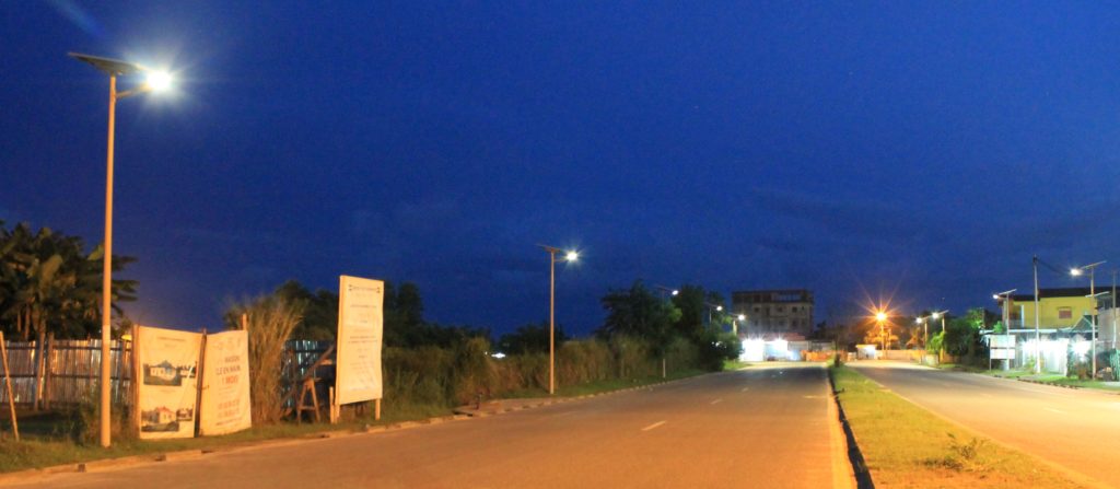 Suite à la commande de 3 000 de nos lampadaires solaires COMBI TOP 3, dans le cadre des mesures prioritaires 2018 du Gabon, les installations continuent dans l’arrière-pays. Actuellement, les installations se poursuivent à Ntoum, chef-lieu du département du Komo-Mondah dans la province de l'Estuaire, située à 38 km de la capitale gabonaise Libreville. Les candélabres solaires sont installés dans des zones dépourvues de lampadaires conventionnels, c’est à dire raccordés au réseau d’électricité. La lumière apporte sécurité et confort aux habitants qui peuvent ainsi prolonger leurs activités quotidiennes en extérieur à la tombée de la nuit et renforcer le lien social. L’éclairage public permet également de redynamiser certains quartiers, en favorisant notamment le développement des petites activités de commerce et de restauration le soir. La solution fournie par l’éclairage autonome s’inscrit parfaitement dans la perspective de mettre en œuvre une véritable transition énergétique à travers la production d’électricité par les énergies renouvelables comme l’ambitionne le Plan Stratégique Gabon Émergent. Le potentiel solaire exceptionnel du pays concorde parfaitement avec cette volonté de recourir aux énergies renouvelables pour l'éclairage public. De plus, les lampadaires solaires Novéa sont complètement autonomes, ce qui leur permet d'offrir un éclairage constant et de qualité grâce au gisement solaire du pays, sans subir les instabilités du réseau électrique traditionnel. Les 3 000 lampadaires en cours d’installation dans les différents quartiers sont des COMBI TOP 3 composés d’un panneau photovoltaïque de haut rendement de 160 Wc, d’un parc de batterie de stockage d’énergie de 819 Wh, et d’un luminaire TEKK S délivrant une puissance d’éclairage de 30 W pour un niveau d’éclairement moyen de 12 lux. La technologie ENDURANCE + développée par Novéa en partenariat avec le CEA de Grenoble offre 5 ans de garantie pour plus de 10 ans de durée de vie. Grâce à ses cellules au Lithium LiFePO4 et à sa gestion unique des flux d’énergie, la technologie Endurance + offre la meilleure durée de vie du marché. Cette batterie, réputée comme la plus performante du marché, a été développée après près de dix ans de recherche et développement. Le programme de fonctionnement choisi pour ces candélabres est un allumage en pleine puissance durant cinq heures à partir du crépuscule avant de passer en mode abaissement à 50 % le reste de la nuit et ce jusqu’à l’aube, afin d’offrir un balisage des lieux malgré une fréquentation moins intense de la population. Cette gestion offre une sécurité tout au long de la nuit et garantie la longue durée de vie de nos produits. Informations supplémentaires : Modèle candélabre solaire : COMBI TOP 3 Luminaire : TEKK S Crosse : St Luc Puissance d’éclairage : 30 W Hauteur de feu : 6.0 m Technologie et capacité batterie : ENDURANCE + TECHNOLOGY : 819 Wh RAL 1019 sable