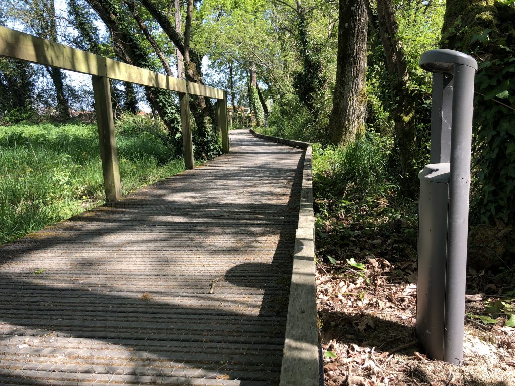 The municipality of Saint Aignan de Grand Lieu, in Loire Atlantique department (France), has chosen to secure two pedestrian paths by lighting them with one of Novéa Énergies' autonomous solutions. The first zone is the pedestrian walkway leading to the multi-purpose room from La Pavelle. Now a MULTI 6 solar power station supplying twelve Baïa R luminous bollards. The MULTI 6 power station is equipped with a 270 Wp photovoltaic solar panel on a four-meter mast, and a 2,816 Wh battery at the bottom of the mast to supply the seven Baïa R terminals of the Ragni range. The second area concerned is the path between Saint Amani Square and Rue des Aigrettes. Seven Baïa R light bollards and a MULTI 5 Novéa Énergies solar power station to supply them have been installed along this path. The MULTI 5 power station is equipped with a 540 Wp photovoltaic solar panel on a four-meter mast, and a 2,816 Wh battery at the bottom of the mast to supply the twelve Baïa R terminals of the Ragni range connected to it. The Baïa bollards have been chosen for their aesthetics and their format, which allows them to blend in as well as possible with the wooded and natural landscape of these places. The nineteen bollards mark out the paths from dusk to dawn, thanks to dimming mode at 5%. A presence detection system is associated to provide full power lighting whenever a user is walking on these lanes. This program provides lighting adapted to the needs of the users, ensuring their safety without lighting at full power when it is not needed. The MULTI solar power station system proposed by Novéa Energies is an innovative and simple to implement solution, which makes it possible to remotely produce energy from light points, in this case the Baïa R bollards. Solar energy is transmitted from the power station to the luminaires using a very low voltage network (24 Volts) which simplifies civil engineering work compared to traditional cable lighting which requires a 220 V network. The operation of these autonomous street lamps does not require any electricity subscription to an energy supplier, as they are powered by the solar energy developed by the power station, in this case MULTI 5 and MULTI 6, which is an energy autonomous lighting solution that reduces the environmental impact while maintaining light comfort and user safety. The MULTI solution is particularly appreciated in areas where it is difficult to install completely autonomous streetlights due to the presence of trees or buildings, for example, which can hinder solar gains. In addition, this system is also appreciated for its aesthetic aspect, as the energy production source is shared on a single point. Additional information: Solar power station model MULTI 5 Solar panel: 270 Wp Technology and battery capacity: ENDURANCE + TECHNOLOGY 2,816 Wh Luminaire : Baïa R bollard RAL grey 2900 sandblasted Solar power station model MULTI 6 Solar panel: 540 Wp Technology and battery capacity: ENDURANCE + TECHNOLOGY 2,816 Wh Luminaire: Baïa R bollard RAL grey 2900 sandblasted Thanks to our partner B-Light Ouest and Cegelec 44 and Eiffage 44 for the realization of this project.