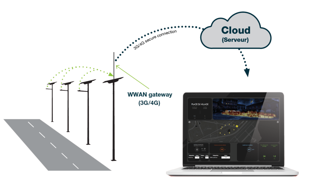 Thanks to the NOVCOM Z communicating node, our lighting management system, and a WWAN gateway, SEVⓔ CONNECT monitor all your installation of solar-powered streetlights from any connected device: computer, tablet or smartphone.