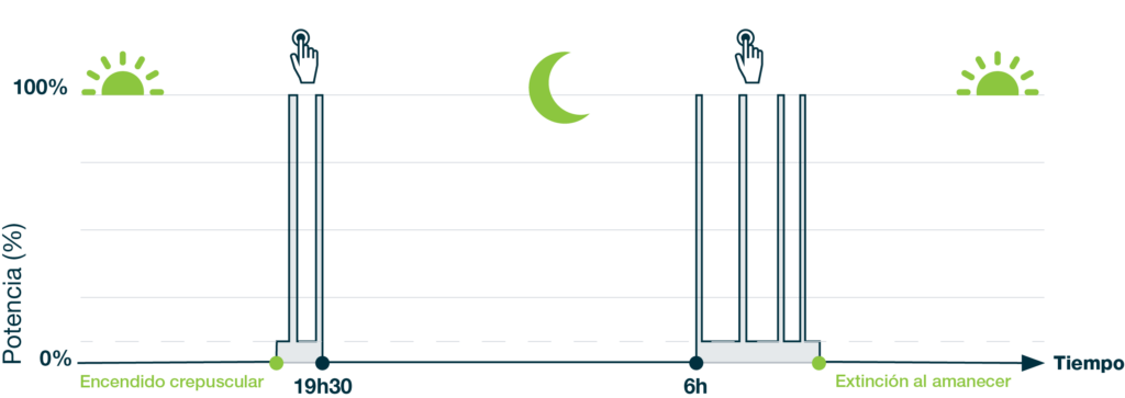 En el caso de una instalación en el borde de una vía muy transitada, es más interesante favorecer el funcionamiento permanente por períodos de tiempo o mediante un interruptor retroiluminado en lugar de la detección en espera: esto evita la transición al 100% de iluminación cada vez que se detecta un vehículo.