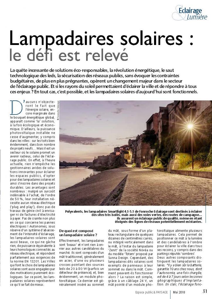 Article Éclairage & Lumière : Lampadaires solaires : le défi est relevé