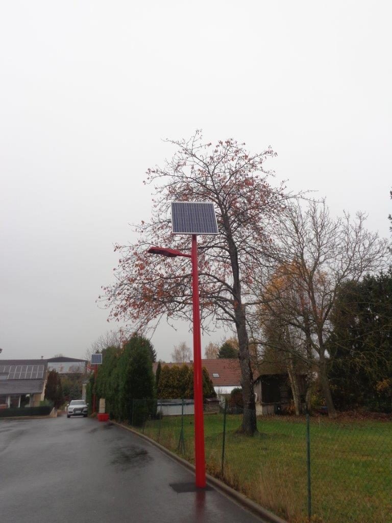 Le projet a pour but d’éclairer une voie de circulation jusqu’alors non éclairée. Ces passages sont éclairés par trois lampadaires solaires COMBI 3 TEKK 16 LED. Ce système fonctionne 3 heures 30 en mode permanent et 1 heure en détection de présence par nuit. Le reste de la nuit la puissance de l’éclairage passe en veille à 10%. Ce lampadaire solaire complètement autonome nécessite simplement un ancrage au sol. La dimension compacte, et le système de connectiques rapides plug-and-play de ce modèle lui permettent d’être installé très rapidement. Au niveau maintenance, les opérations sont très limitées puisque les batteries lithium Premium développée par Novéa en collaboration avec le CEA de Grenoble permet d’obtenir des durées de vie de 20ans, et que le panneau solaire incliné à 65° est dit auto-nettoyant. L’installation de ce candélabre photovoltaïque a évité les travaux de génie civil lourds et coûteux, le raccordement au réseau électrique ainsi que la mise en place d’une armoire d’éclairage public. Informations supplémentaires : Modèle lampadaire solaire : COMBI 3 TEKK Panneau solaire : 150Wc Hauteur de feu : 4m50 Capacité batterie : Lithium Premium 24V 30Ah Puissance de 19W Intensité lumineuse à la sortie du luminaire : 2 147 lumens Mât cylindroconique en acier galvanisé